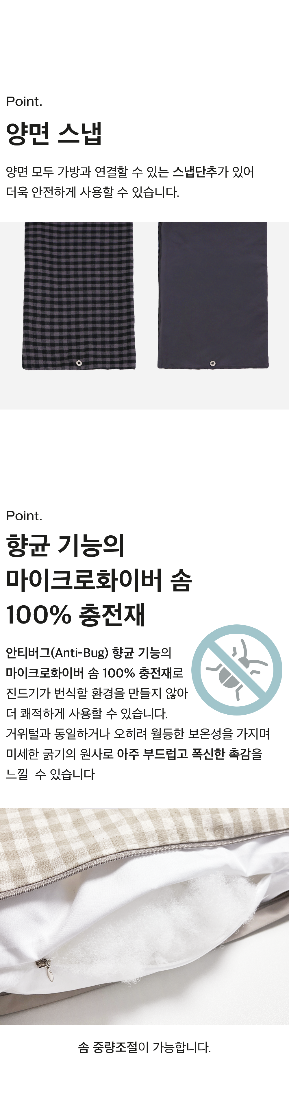 마이크로화이버 솜 100% 충전재.