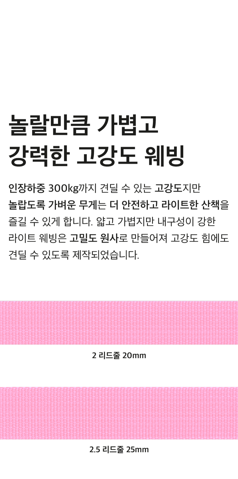 핸즈프리가 가능한 3-way 라이트 리드줄로 더 편리한 산책을 즐겨보세요!