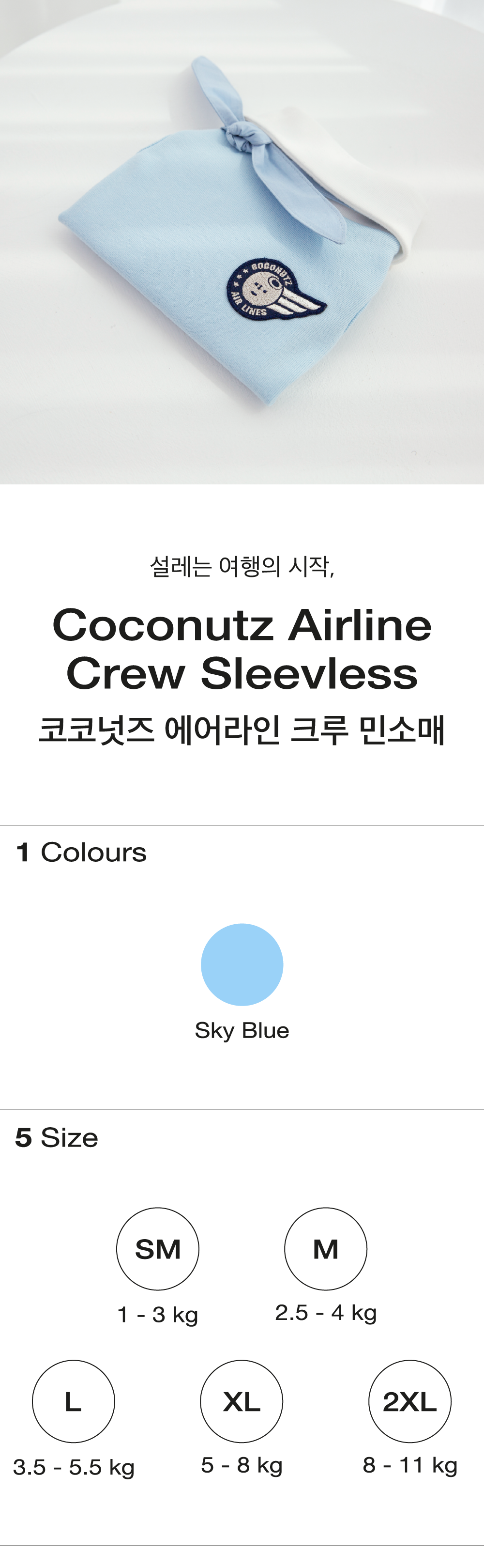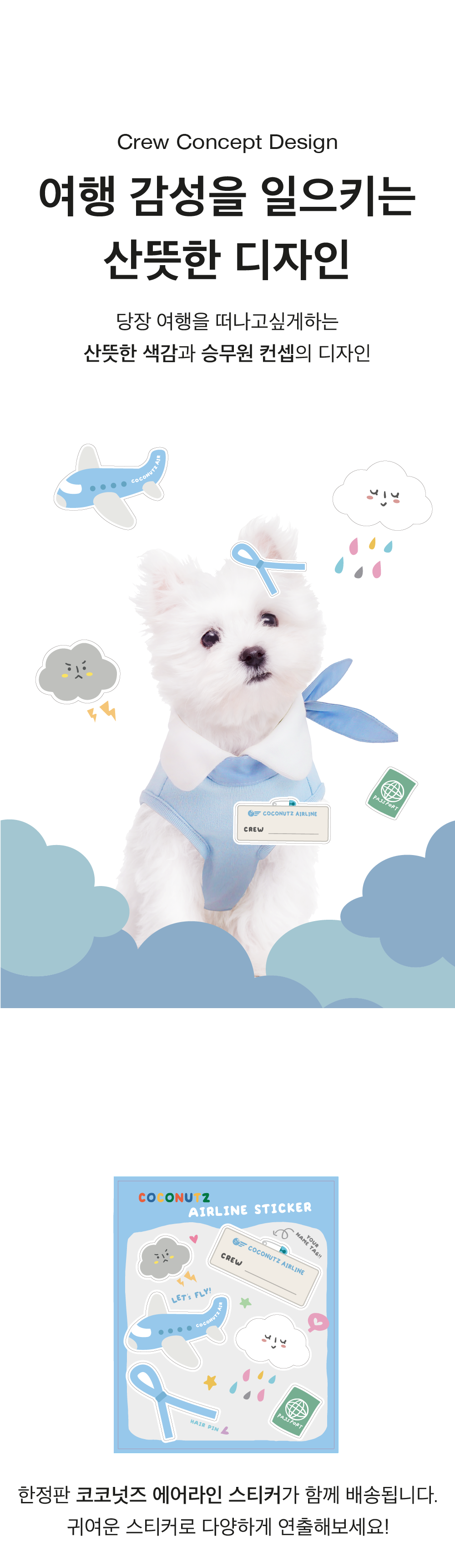 코코넛즈 에어라인 크루 민소매와 함께 멋진 멍무원이 되어 설레는 여행을 떠나보세요 :)