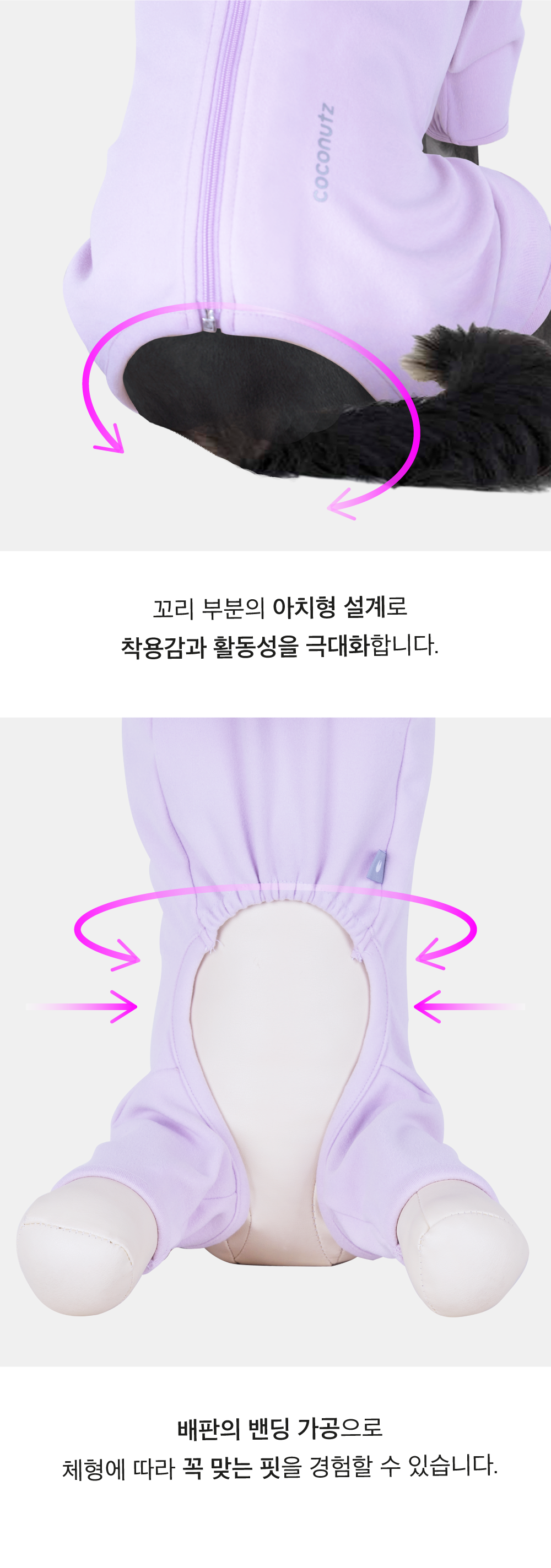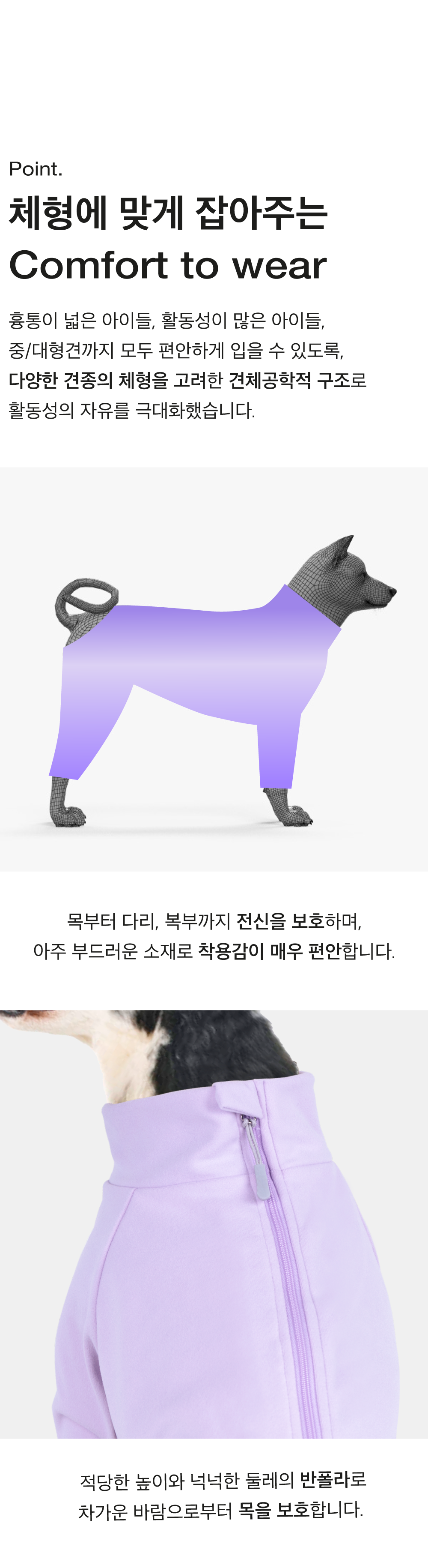 등 지퍼로 순식간에 입고 벗을 수 있는 Easy wear.