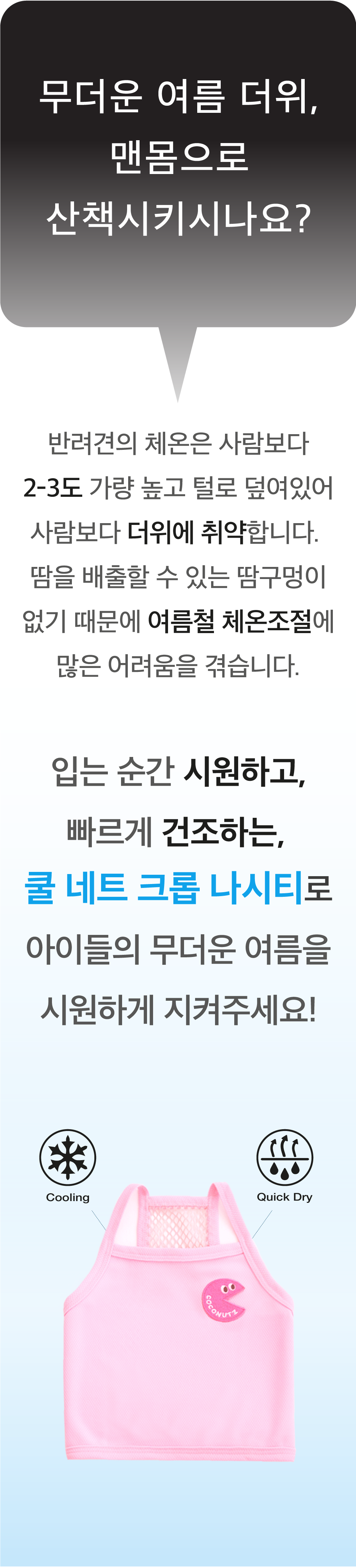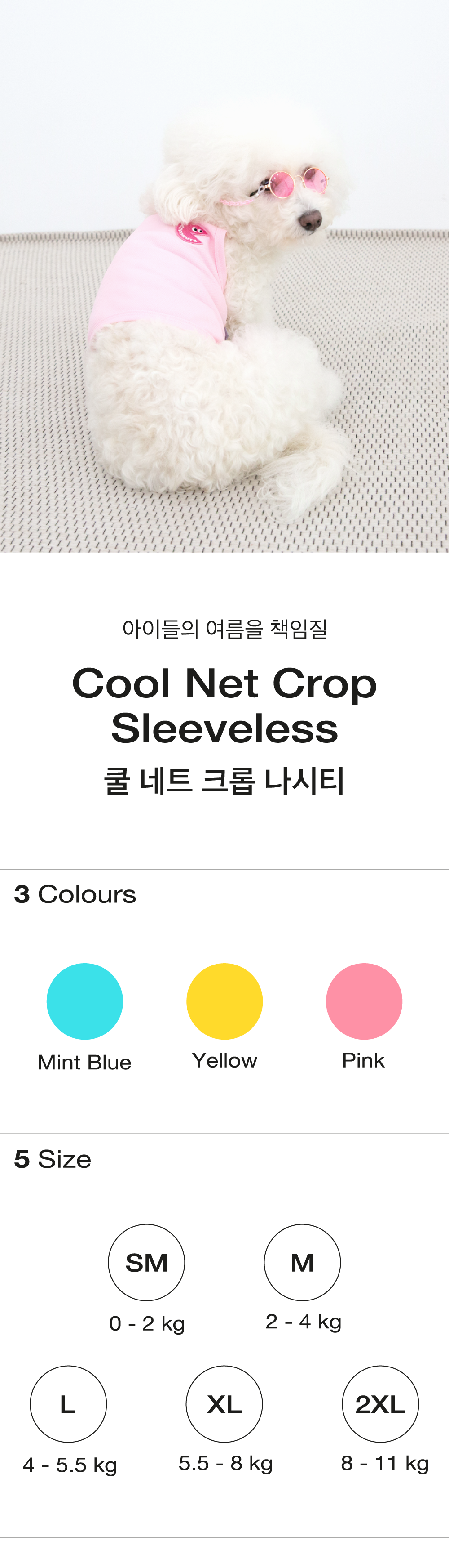 댕댕이들의 여름을 책임질 귀여운 기장의 크롭 나시티입니다.