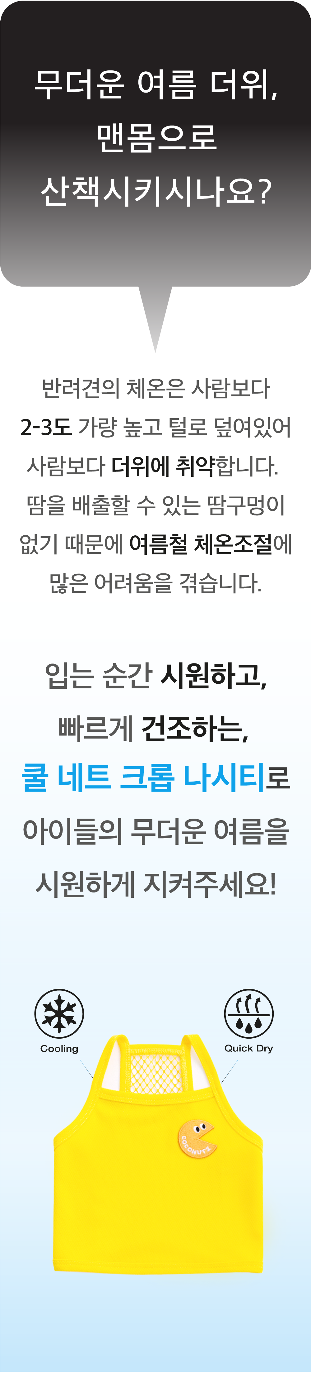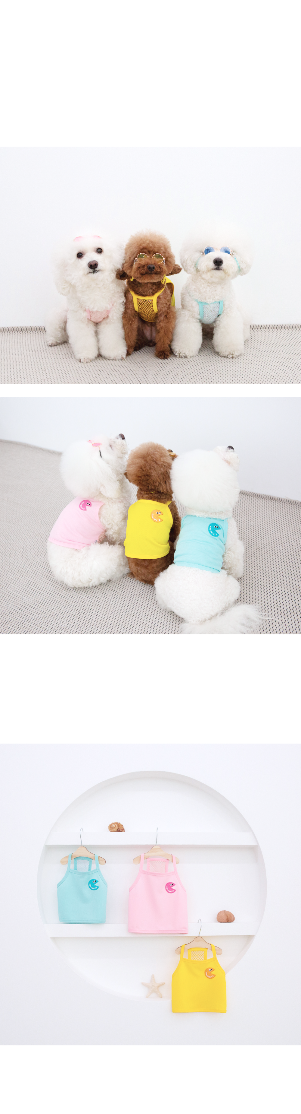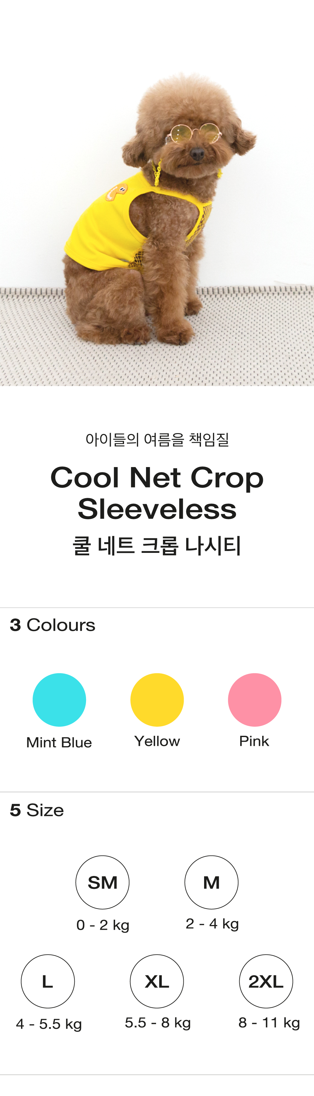 댕댕이들의 여름을 책임질 귀여운 기장의 크롭 나시티입니다.