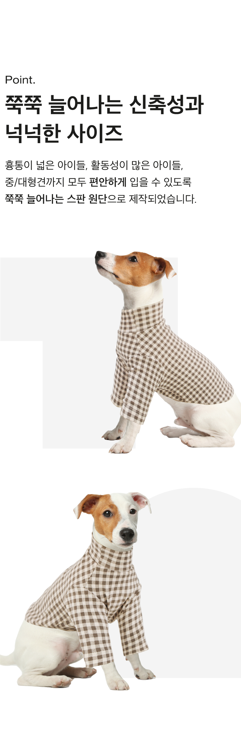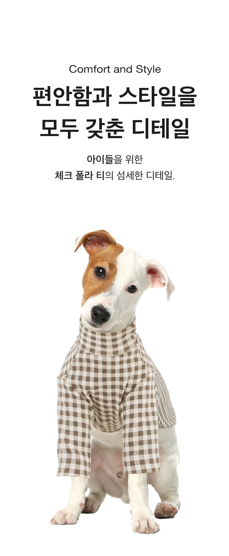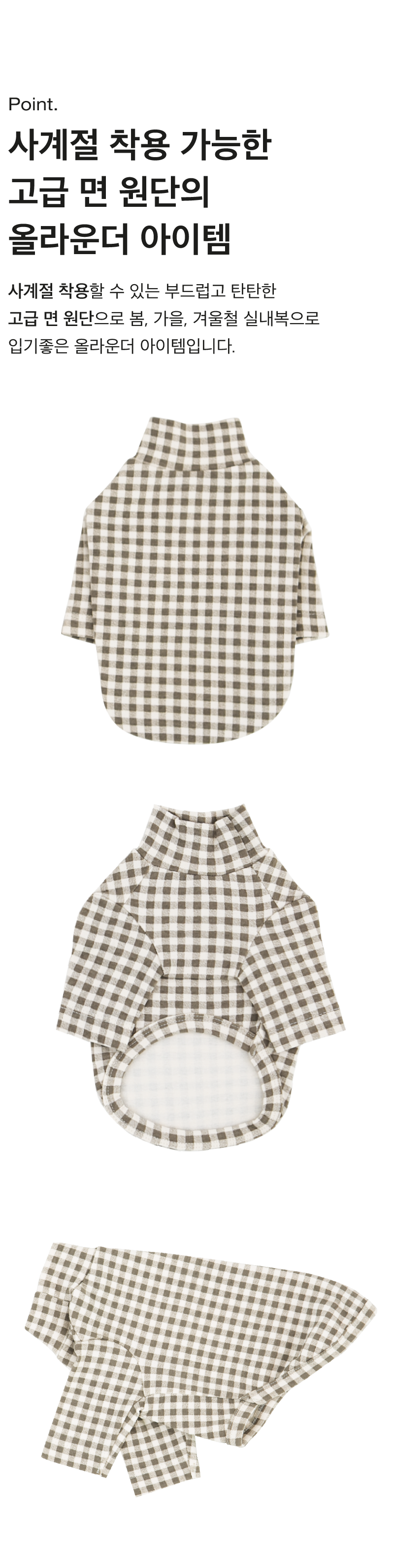 화사하고 고급스러운 색감의 깅엄 체크 패턴 폴라 티셔츠입니다. 신축성 좋은 30수 면 스판 원단으로 가을,겨울 실내외 데일리룩으로 적합합니다.