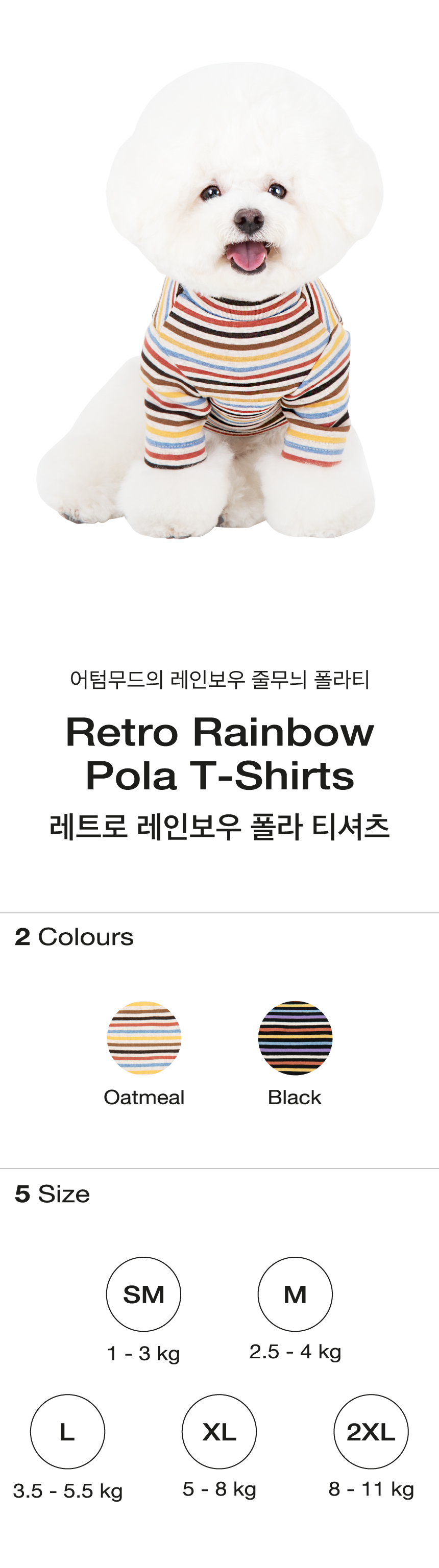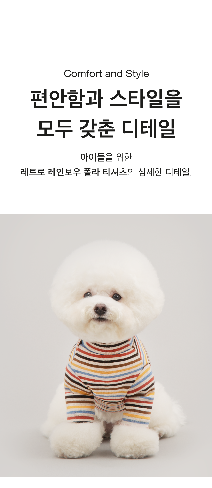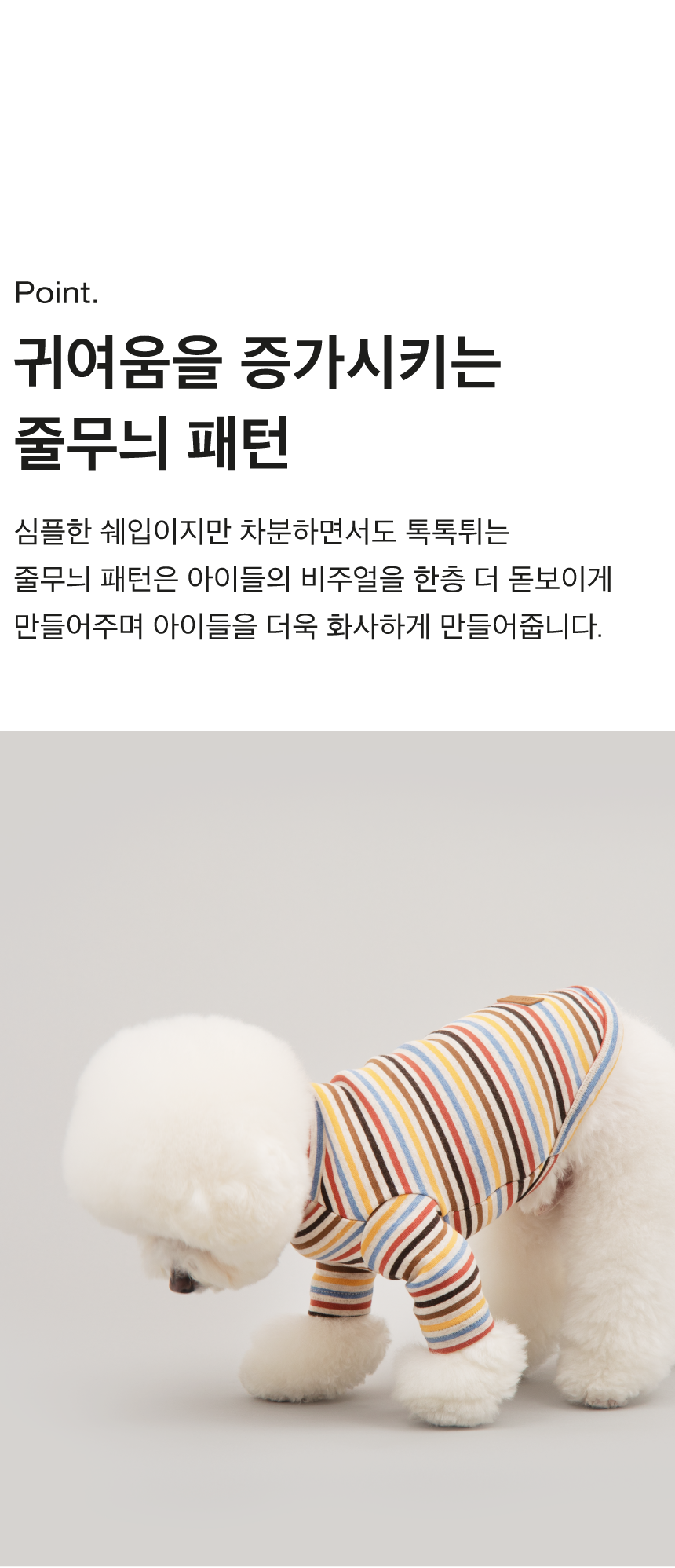 어텀무드의 6색 줄무늬가 배치된 레트로한 컬러의 폴라 티셔츠입니다. 신축성 좋은 보드라운 피치기모 원단으로 가을,겨울 실내외 데일리룩으로 적합합니다.